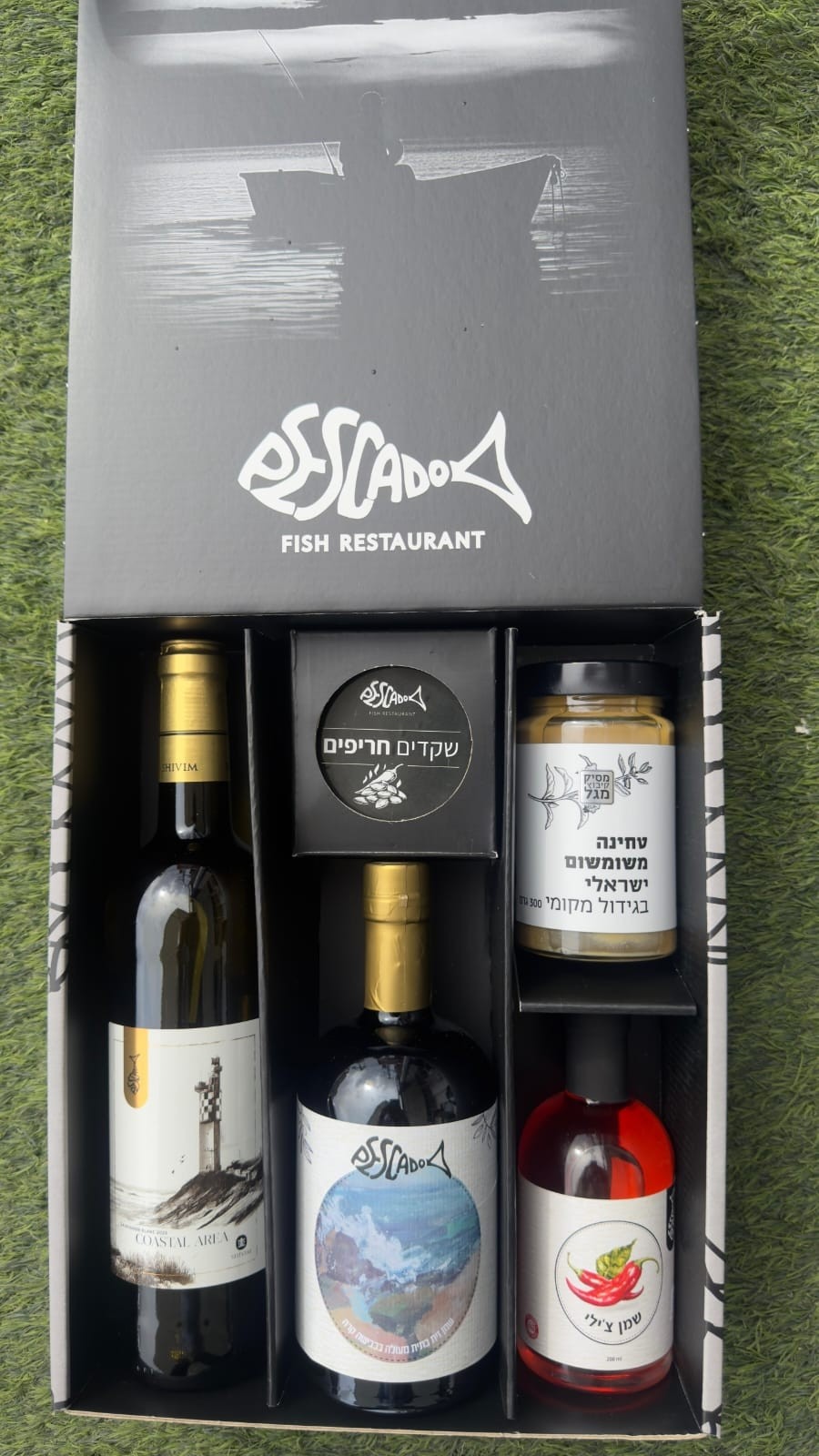שמן זית פסקאדו, יין פסקאדו מתחלף, שמן צ'ילי פסקאדו, טחינה שומשום שראלי מגל ושקדים חריפים מיוחדים של פסקאדו